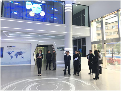 由胡宋孝院长等人陪同县考绩办三人参观综合体展厅,其中胡宋孝院长向其介绍了展厅大概内容。由张雷森主任向其介绍了实验室的三个产品和实验室的内容。