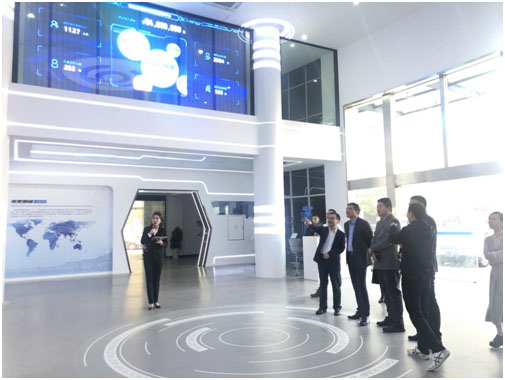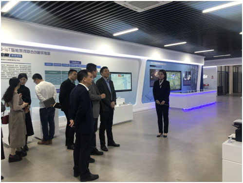 由胡宋孝院长,张雷森主任等人陪同市经信局毛必土副局长参观综合体展厅,其中张雷森主任向毛副局长介绍了实验室的大概内容。