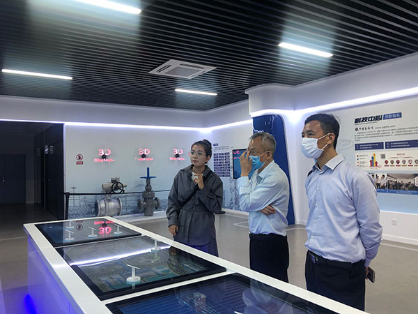 由潘秦秦等人陪同来访人员参观,并对展厅讲解。